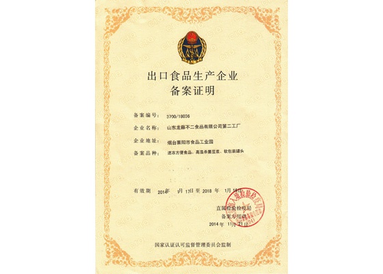 2014年11月21日,山東龍騰不二食品有限公司第二工廠收到山東出入境檢驗(yàn)檢疫局《出口食品生產(chǎn)企業(yè)備案證明》。這意味著該工廠生產(chǎn)的軟包裝罐頭,成功打開了出口日本的“通道”。